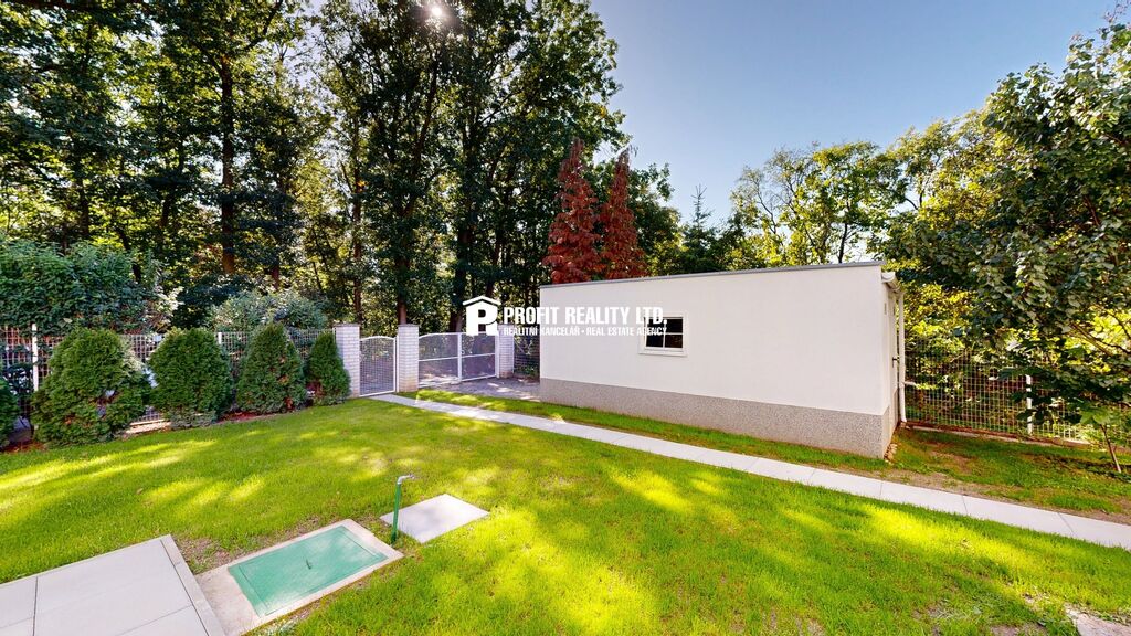 Nemovitost se nachází ve zcela tiché, odpočinkové části Lipenců, přímo u lesa – ideální pro ty, kdo hledají spojení komfortu města s přírodou na dosah. Byt je součástí domu o dvou identických bytových jednotkách, kde každá z nich má samostatný vchod, zahradu, garáž a samostatné LV.