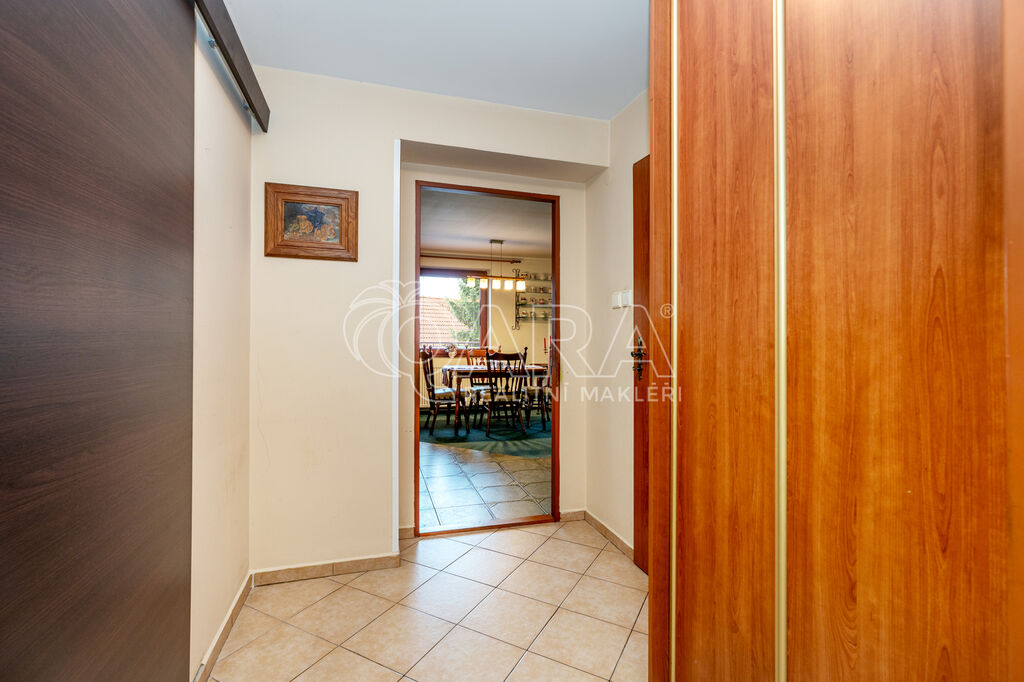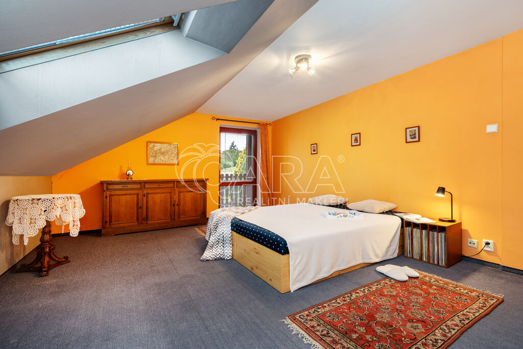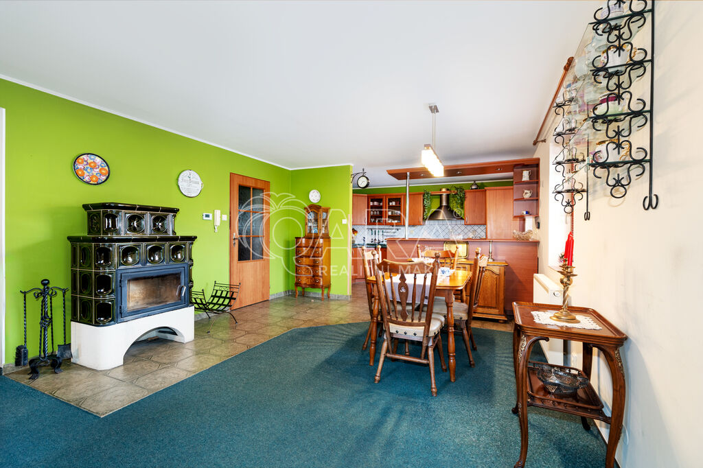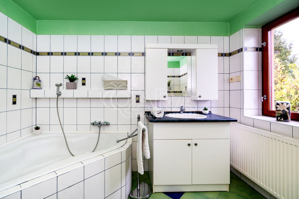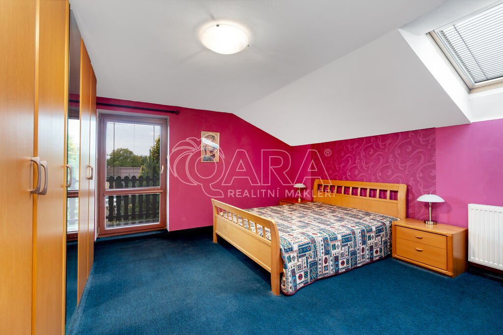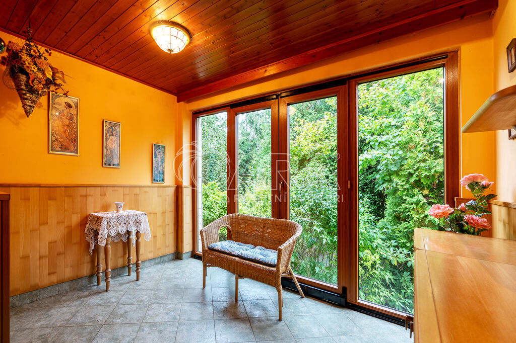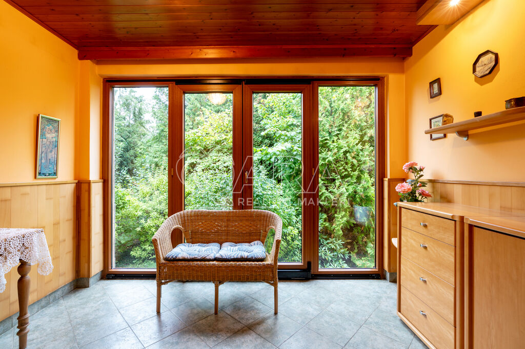 Dům z roku 2001 nabízí čtyři prostorné ložnice a obývací pokoj, který je propojen s kuchyní a zároveň se z obývacího pokoje dostanete na terasu, z které sejdete na zahradu, což vytváří příjemný a otevřený prostor pro rodinné aktivity. K dispozici jsou dvě koupelny s WC, přičemž každé patro má jednu. V přízemí se nachází zimní zahrada, která je ideálním místem pro odpočinek, zatímco v patře se můžete těšit z prostorného balkonu s výhledem do okolí.