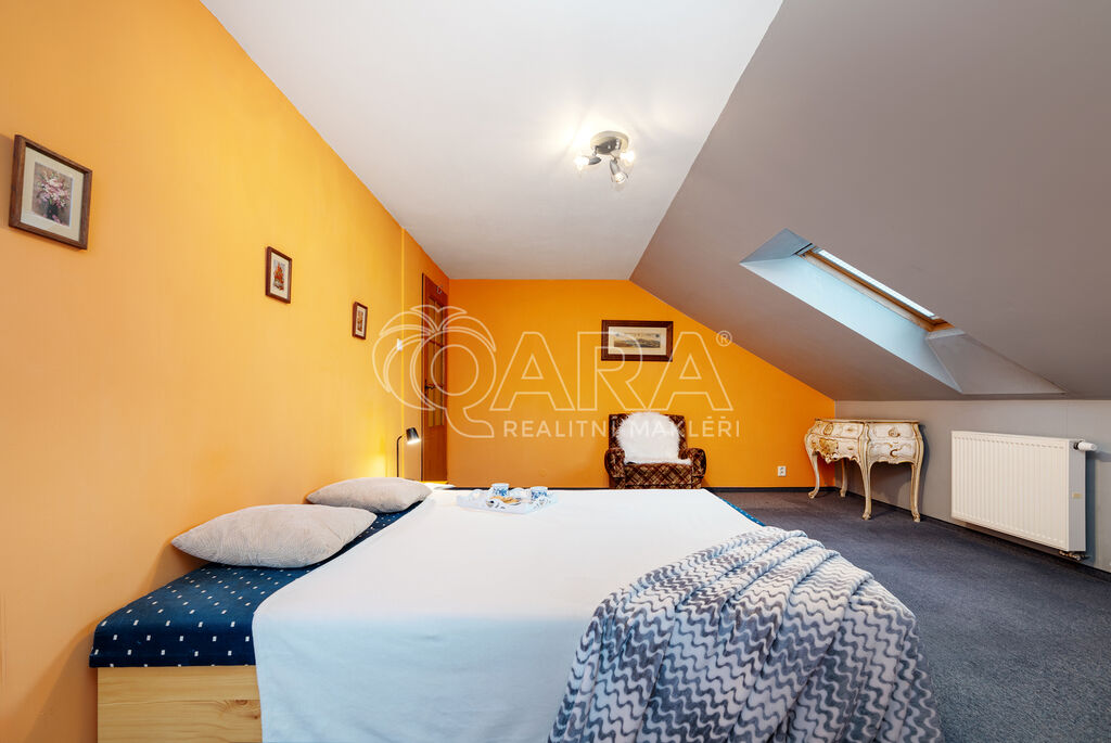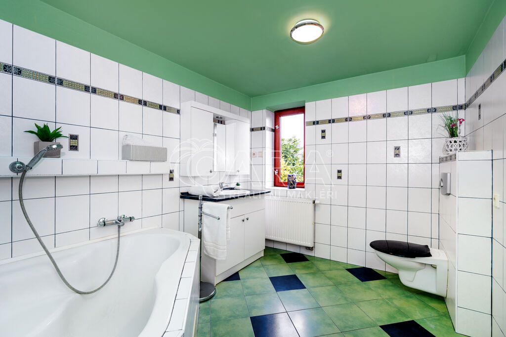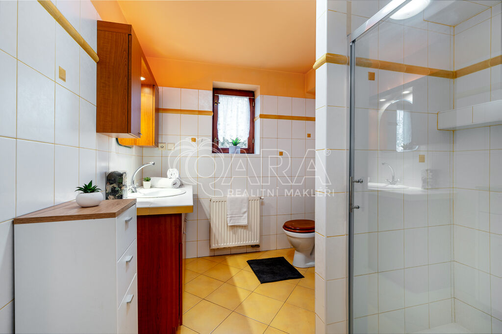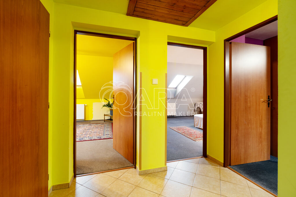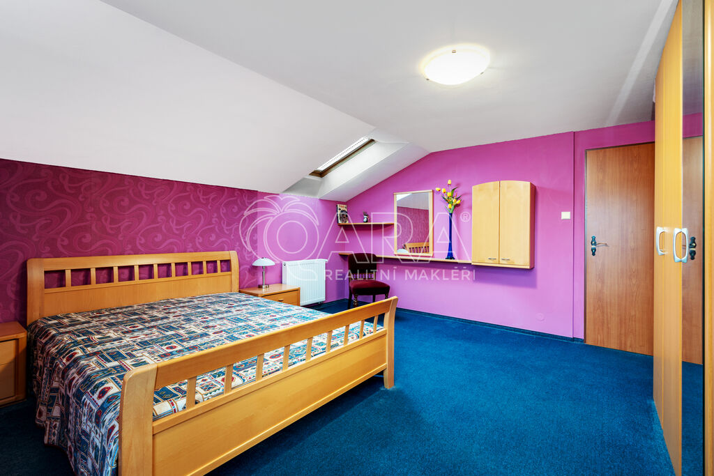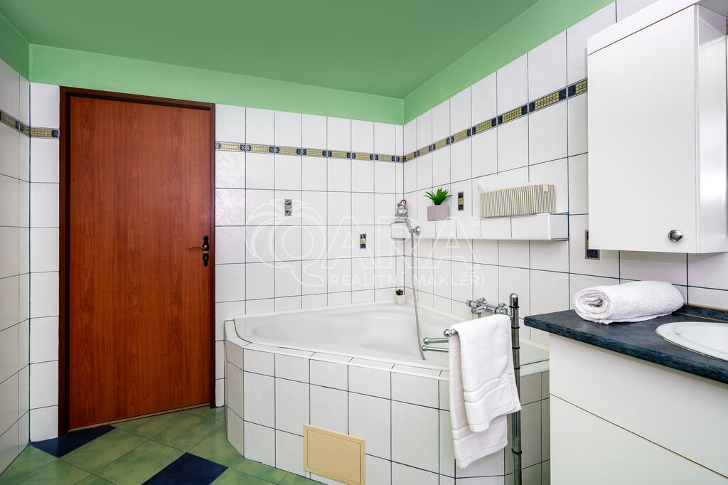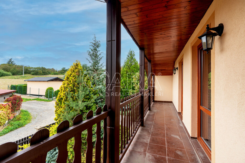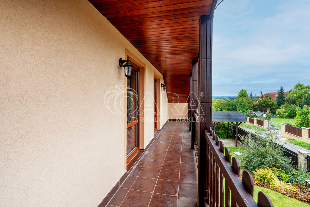 Dům z roku 2001 nabízí čtyři prostorné ložnice a obývací pokoj, který je propojen s kuchyní a zároveň se z obývacího pokoje dostanete na terasu, z které sejdete na zahradu, což vytváří příjemný a otevřený prostor pro rodinné aktivity. K dispozici jsou dvě koupelny s WC, přičemž každé patro má jednu. V přízemí se nachází zimní zahrada, která je ideálním místem pro odpočinek, zatímco v patře se můžete těšit z prostorného balkonu s výhledem do okolí.