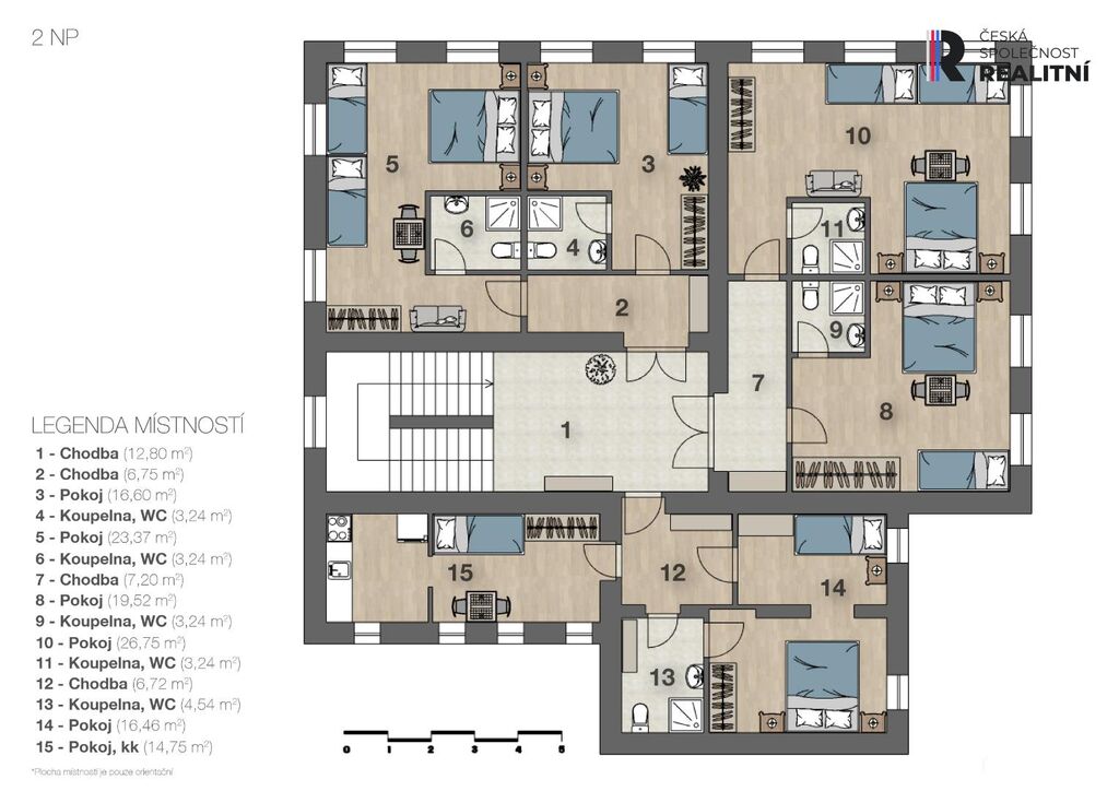 - 10 pokojů s vlastním sociálním zařízením (42 lůžek)