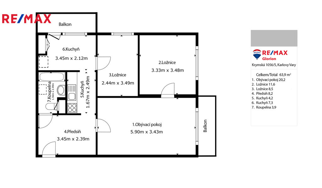 Nabízíme k prodeji byt 3+1 s dvěma balkony v osobním vlastnictví, který se nachází v ulici Vítězná v Karlových Varech. Byt je situován v 5. patře panelového domu se dvěma výtahy a má celkovou plochu 74 m².