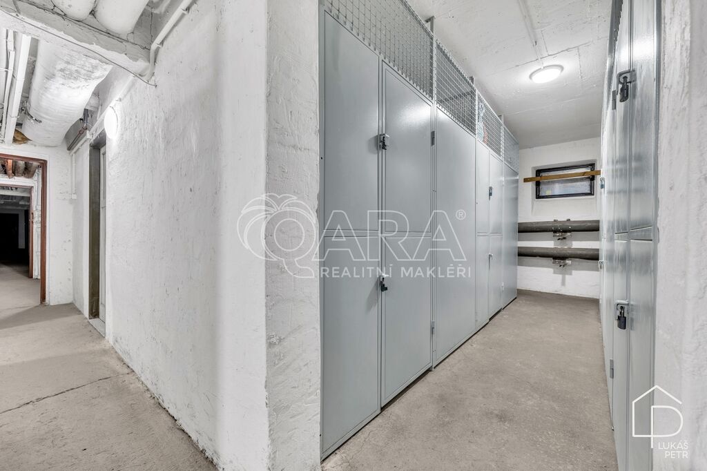 Součástí bytu je lodžie o velikosti 3.2 m² orientovaná do klidného vnitrobloku se zelení a sklepní kóje v suterénu.