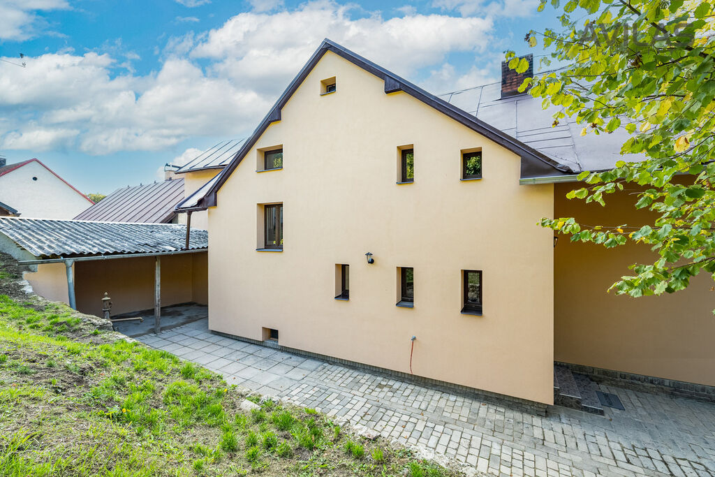 Dům prošel rekonstrukcí - nové rozvody elektřiny, vody, kanalizace, vytápění a nové radiátory. Zateplení podlahy, střechy a částečně fasády. Plastová okna s dvojsklem a nová fasáda.