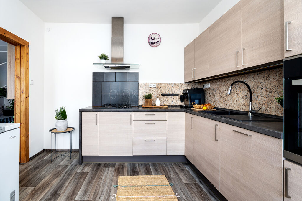 Byt prošel před pěti lety rekonstrukcí (kuchyně, koupelna, podlahy). Kuchyně je plně vybavená běžnými spotřebiči a plynovým sporákem – navržena s důrazem na funkčnost a praktičnost - stávající majitel je profesionální kuchař.