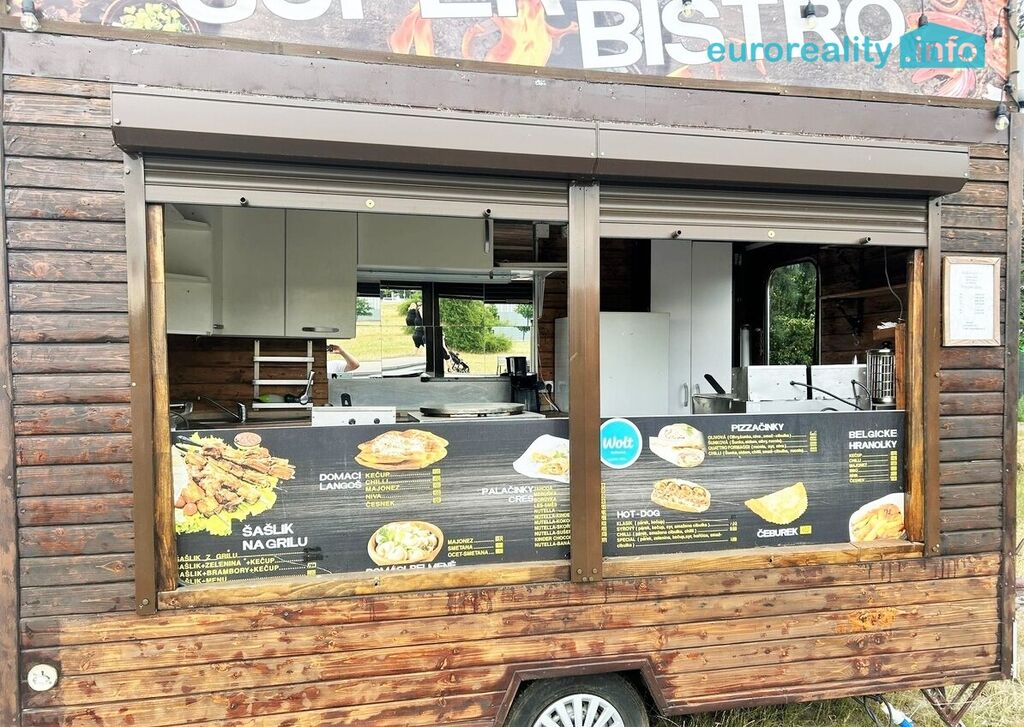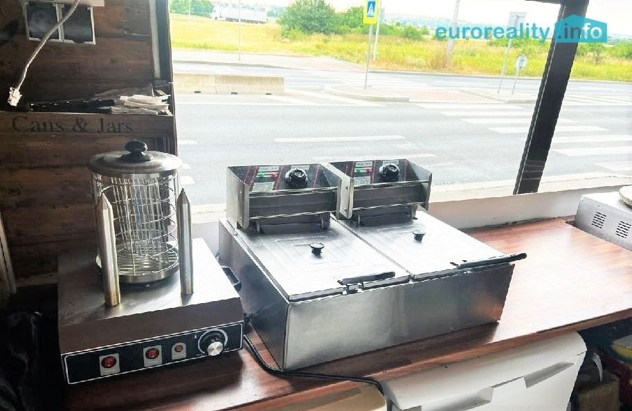 Stánek je zánovní a je připraven k okamžitému provozu. Vybavení: lednice, mrazák, pracovní pulty a police, fritéza, grilovací zařízení, dřez s rozvody vody, elektrické rozvody, osvětlení, venkovní výdejní okno s roletami, reklamní cedule s jídelním lístkem (možno ponechat nebo odstranit).
