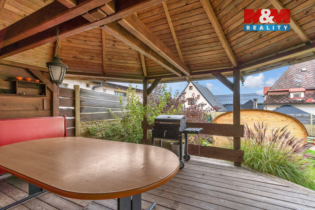 Nabízíme k prodeji jedinečný rodinný dům v centru obce Žacléř, který je aktuálně využíván jako penzion. V přízemí se nachází plně vybavená kuchyň propojená s obývacím pokojem, kde nechybí krbová kamna napojena na celý topný systém včetně ohřevu vody, dále ložnice a koupelna se sprchovým koutem a WC. V prvním patře najdete tři ložnice a koupelnu s vanou, sprchovým koutem, WC a bidetem. Podkroví je upraveno na pokoj se šesti lůžky. Sklep je využíván jako společenská místnost se saunou a sprchou. Na zahradě je k dispozici bazén, trampolína, sauna a pergola. Dům je ve velmi dobrém stavu. V okolí najdete široké možnosti pro volnočasové aktivity – od turistických tras a cyklostezek až po lyžařské areály Prkenný Důl a Bret. V obci se nachází veškerá občanská vybavenost. Přístup do obce v blízké budoucnosti zrychlí dálnice D11 s odhadovaným dokončením v roce 2028. Nemovitost je tedy ideální investice pro podnikání i rodinné bydlení. Pro domluvení prohlídky a další informace volejte makléře.