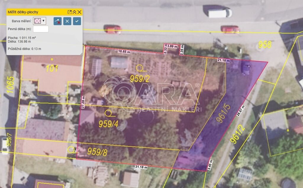 K prodeji nabízíme pozemek o velikosti 974 m2, z něhož: