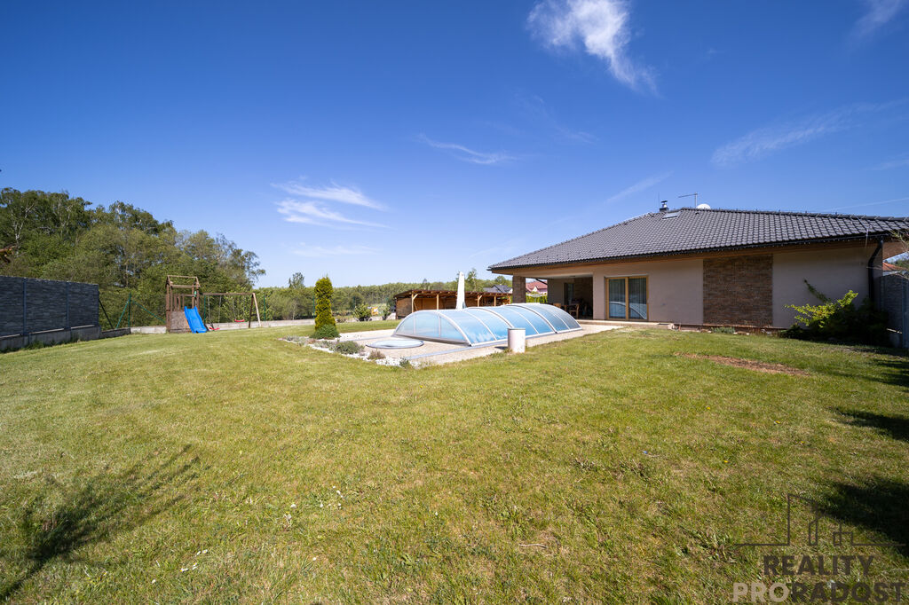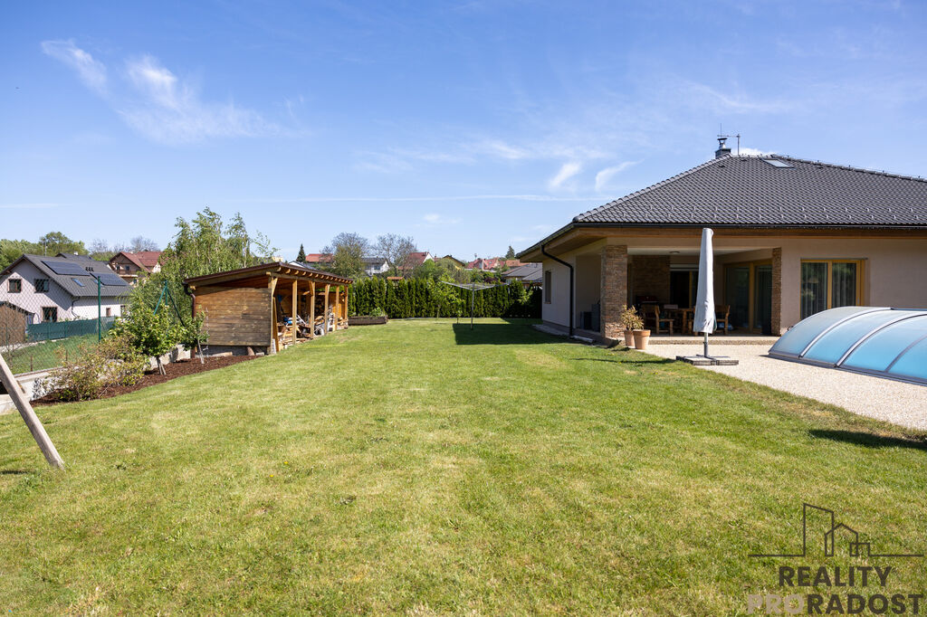 Pokud obdivujete přírodu, zamilujete si krytou terasu a bazén o rozloze 20 m², kde strávíte nezapomenutelné letní dny. Zahrada nabízí dostatek prostoru pro děti, domácí mazlíčky a třeba i zahradní pergolu na příjemné posezení s přáteli. Systém vytápění vám pak zajistí pohodlí i v zimním období, a to díky plynovému kotli a podlahovému vytápění, které skvěle doplní krb pro příjemné chvíle u ohně.