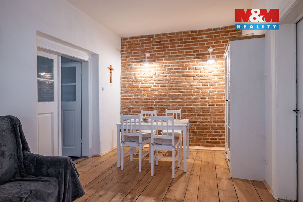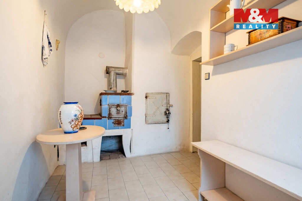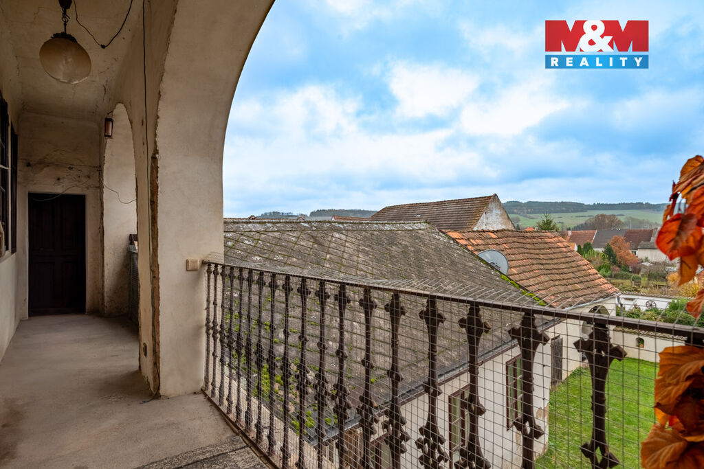 V patře je umístěno 7 obytných místností, kuchyň, spižírna a pavlač s půvabným výhledem na hrad. Rozlehlá půda nabízí možnost vestavby dalších pokojů.