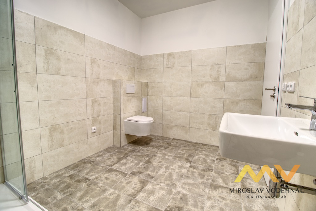 Tento stylový a moderní prostor je ideální pro bydlení, ale také jako reprezentativní kancelář či sídlo firmy. Ateliér je vybavený kuchyňskou linkou s indukční dvojplotýnkovou varnou deskou, el. troubou, odsavačem par. V kuchyňské lince je příprava na myčku nádobí a lednici. Prostorná koupelna je se sprchovým koutem, toaletou, umyvadlem a přípojkou na pračku, popř. sušičku prádla. V předsíni bude instalována vestavná šatní skříň na míru. Okna plastová (izolační trojsklo), vytápění centrální podlahové. V domě je kolárna, možnost parkování před domem bez poplatků, internet zaveden (není v ceně nájmu).