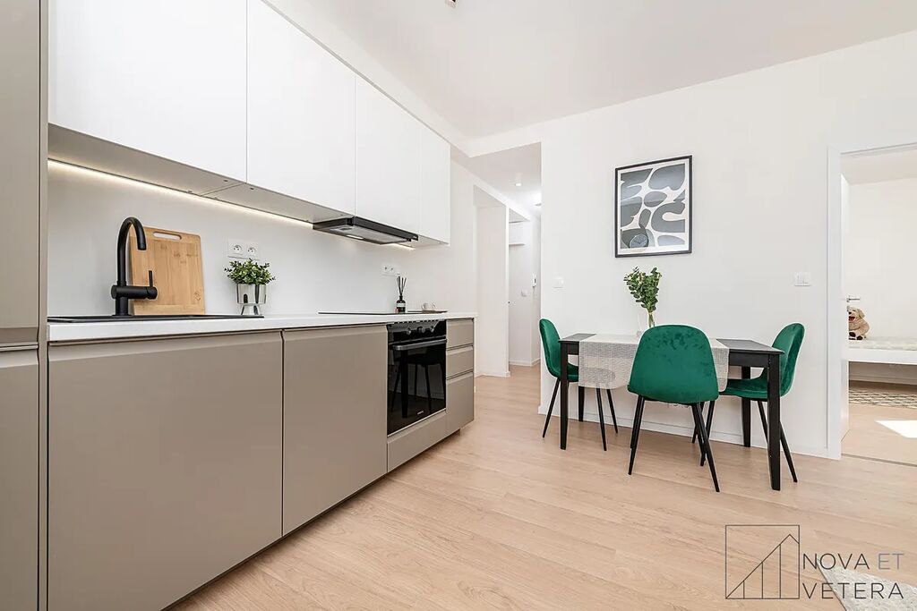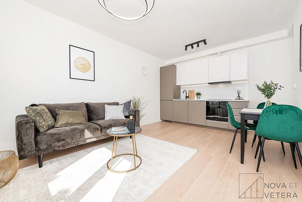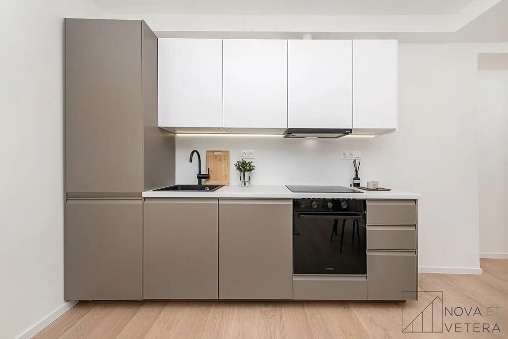 Byt právě prošel kompletní a kvalitní rekonstrukcí, která zahrnuje nové rozvody elektřiny, vody a odpadů, nové podlahy, moderní obklady a dlažbu značky Marazzi, koupelnu se sprchovým koutem a sanitou Grohe a také novou kuchyňskou linku se spotřebiči Gorenje, na kterou je poskytována prodloužená záruka pět let.