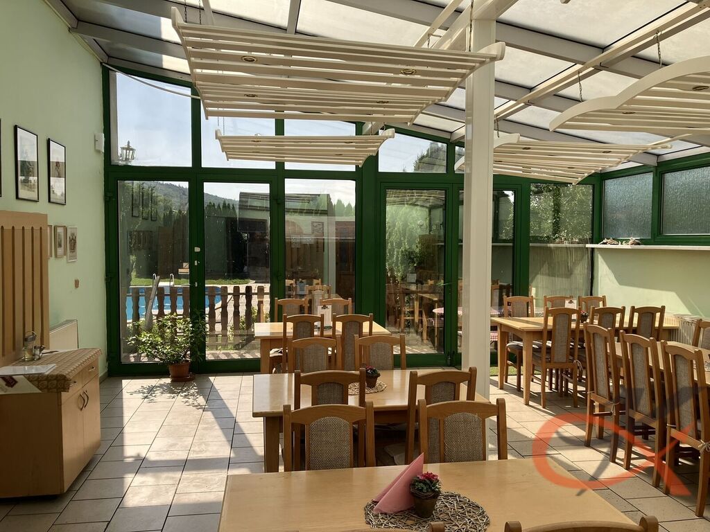 Prostory objektu jsou vhodné pro ubytování a pořádání veškerých společenských a kulturních akcí. V této lokalitě je nemovitost tohoto typu ojedinělá. Celá podlahová plocha objektu je 331m². Objekt je částečně podsklepený a slouží k uložení pivních beček. Přízemí budovy je tvořeno z prostorného terasového sálu přístupného z restaurace a ze zadní strany z venkovní terasy. Dále se v přízemí nachází kuchyně, sklad potravin a sociální zařízení. Ve II.NP jsou situovány čtyři pokoje. Každý pokoj má své sociální zařízení. Dva pokoje jsou s balkónem a výhledem na venkovní terasu a nekrytý bazén. Ve III.NP jsou čtyři pokoje s jedním společným sociálním zařízením. Celková ubytovací kapacita je 41 lůžek, restaurace je pro 60 hostů a venkovní zastřešená terasa pro 20 osob.
