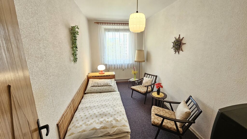 K bytu náleží také úložná místnost na patře, sdílená pouze se sousedy. Byt se prodává kompletně zařízený a je ihned k dispozici.