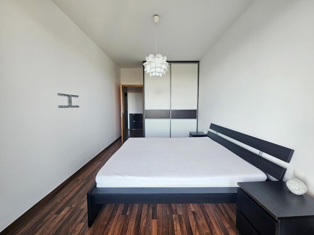 Byt se nachází v moderním bytovém komplexu v těsné blízkosti řeky Vltavy. Byt je zařízený. Obývací pokoj s kompletně vybavenou kuchyňskou linkou (trouba, varná deska, myčka, lednice s mrazákem, mikrovlnná trouba), TV a prostorný regál s úložným prostorem. Dále sedačka a jídelní stůl. Samostatná ložnice s manželskou postelí a vestavěnou skříní. Koupelna s vanou. K dispozici komora s pračkou. Prostorná předsíň s botníkem.