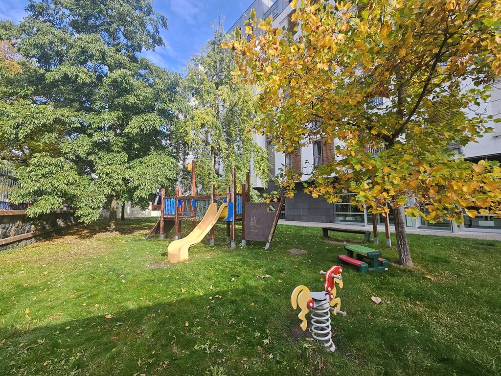 Klidná lokalita, výborná dopravní dostupnost metro C Nádraží Holešovice, tramvajové zastávky, bus, hřiště před domem, cyklostezka podél Vltavy