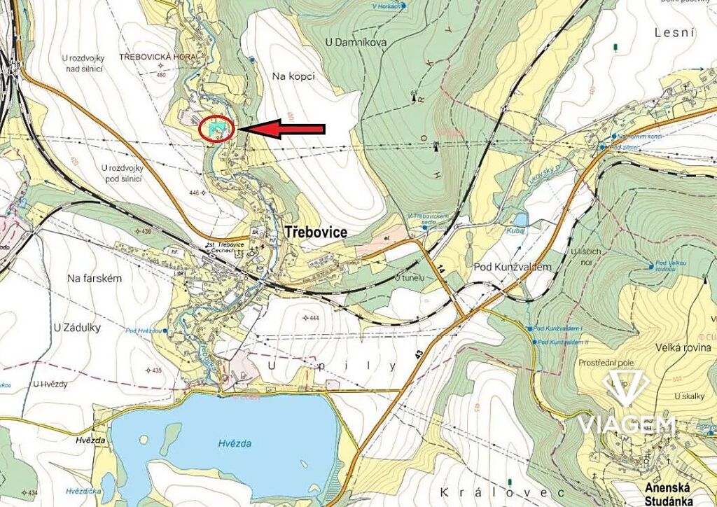 Nabízíme 1/2 podíl (50 %) stavebního pozemku v obci Třebovice, okres Ústí nad Orlicí. Podíl o výměře 2 108 m² je dostatečný pro výstavbu rodinného domu, přičemž po rozdělení pozemku může nový majitel využít svou část samostatně k stavbě rodinného domu.