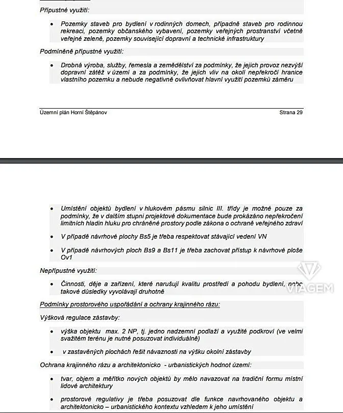 Možnosti využití pozemků jsou dány územní plánem, který předurčuje pozemky pro rekreační zástavbu se specifikací “Bs - plochy smíšené obytné”.