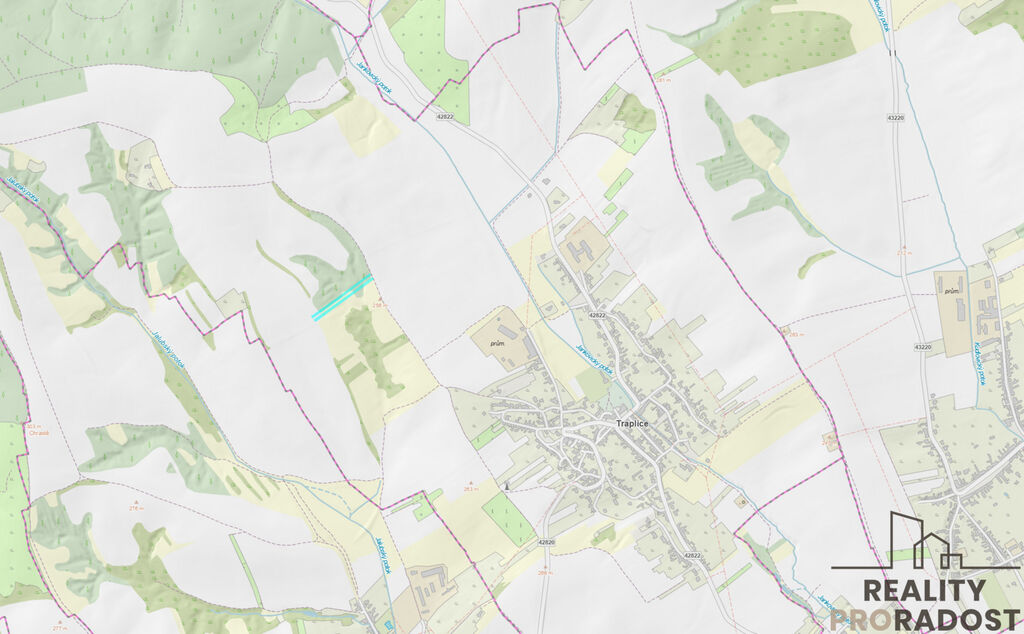 Exkluzivní nabídka prodeje 4 parcel v katastrálním území Traplice. Celková plocha pozemků činí 4459m2. Jedná se o dva dlouhé pruhy pozemků vedených jako trvalý travní porost. Je zde tráva a náletové dřeviny. Šíře každého jednotlivého pruhu je cca 7-8.5m a délka cca 270m. Majitel momentálně nemá žádný uzavřený pacht.