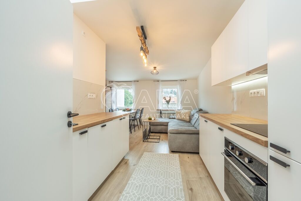 V zastoupení vlastníka vám nabízím k prodeji krásný, plně zařízený byt o dispozici 2+kk a rozloze 48,1 m2. Byt je umístěn ve 2. patře renovovaného bytového domu bez výtahu. Jednotka sama o sobě má příjemnou vzdušnou dispozici, minimalistický čistý design a je prodáván s kompletním vybavením tak, že už si stačí vzít jen kartáček na zuby a můžete zde bydlet. Budoucí obyvatele jistě potěší i fakt, že je v bytě instalována klimatizace, takže letních veder se nemusíte vůbec obávat.
