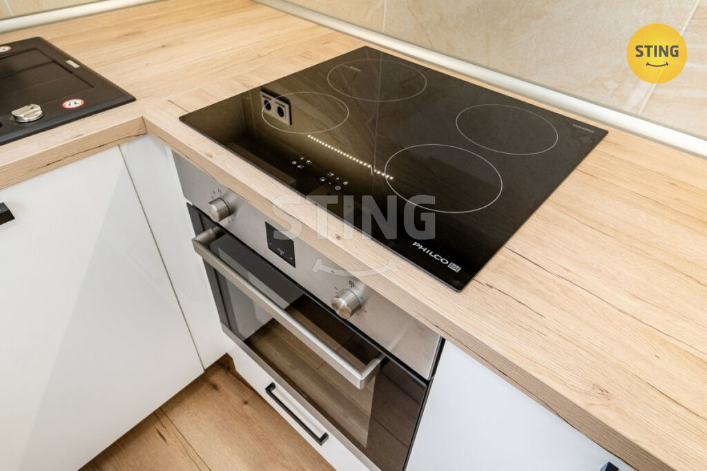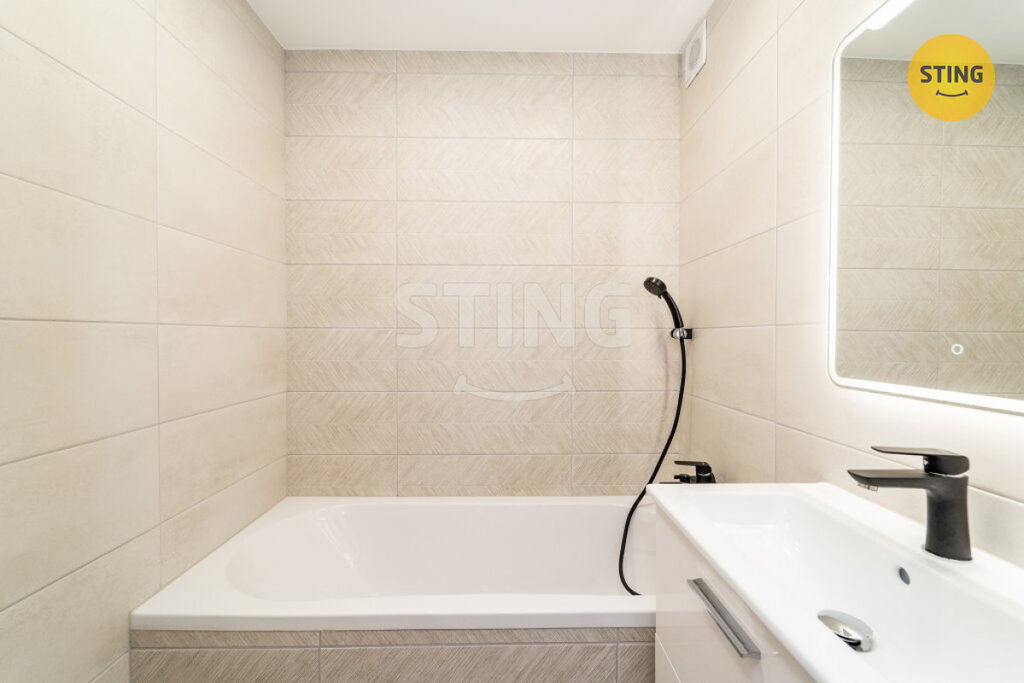 Byt je po zdařilé, moderní a vkusné rekonstrukci. Kuchyňská linka na míru s vestavěnými spotřebiči: horkovzdušná a mikrovlnná trouba, digestoř, indukční varná deska, myčka, příprava na lednici s mrazákem. Koupelna a samostatná toaleta s designovými obklady i sanitou je vybavena vanou, umyvadlovou skřínkou s umyvadlem. Výhodou bytu jsou neprůchozí pokoje. V bytě jsou rozvody elektřiny v mědi, sádrokartonové podhledy s led osvětlením, kvalitní plovoucí podlahy, interiérové dveře včetně zárubní, plastová okna vybavena venkovními, elektricky ovládatelnými roletami na míru.