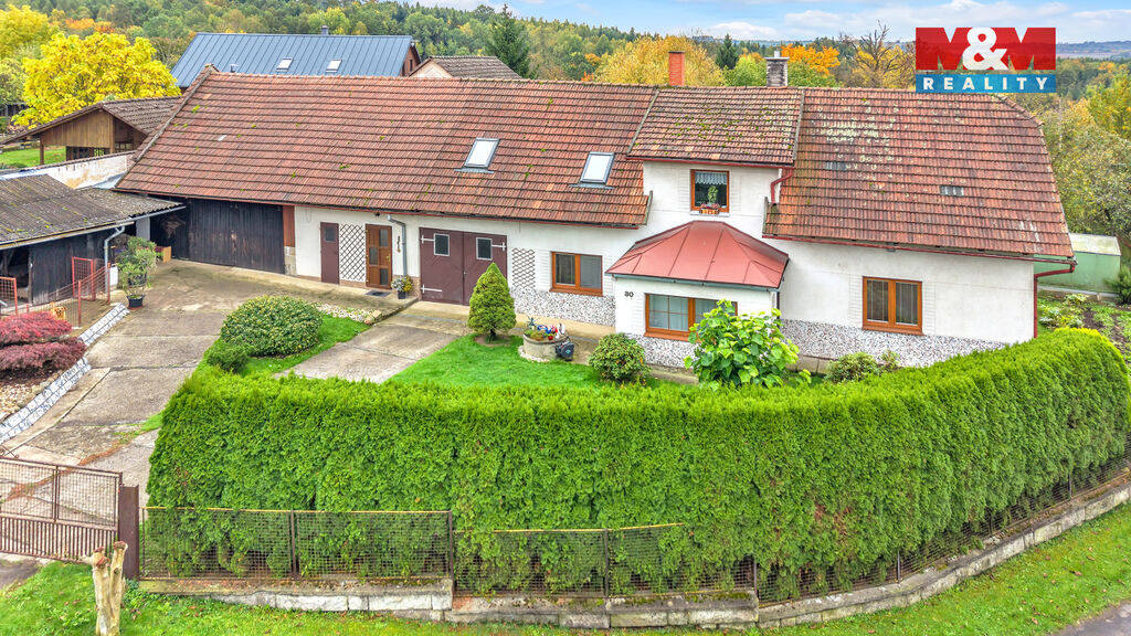 Nabízíme k prodeji 3/4 podíl na zděném rodinném domě se dvěma bytovými jednotkami, které disponují vlastními vstupy. Nemovitost se nachází v části obce Mladějov zvané Střeleč. Jedné z nejvyhledávanějších lokalit Českého ráje. Celková užitná plocha domu činí 195 m². Dům má sedlovou střechu s pálenou taškou, plastová okna v dekoru dřeva a je v dobrém technickém stavu. Každá bytová jednotka má vlastní vstup, což nabízí ideální podmínky pro dvougenerační bydlení nebo investici. Vytápění zajišťuje automatický kotel na tuhá paliva se zásobníkem napojený na radiátory. Je možné využít i krbová kamna pro pocitově jiné teplo. Objekt je napojen na veřejný vodovod, zároveň disponuje vlastní studnou na užitkovou vodu. Odpady jsou svedeny do septiku. Součástí nemovitosti je také stodola, garáž pro jeden automobil, dílna a sklep. Střeleč se nachází v samém srdci Českého ráje, v dojezdové blízkosti nejznámějších turistických cílů jako Prachovské skály, hrad Kost, zřícenina hradu Trosky nebo Humprecht.