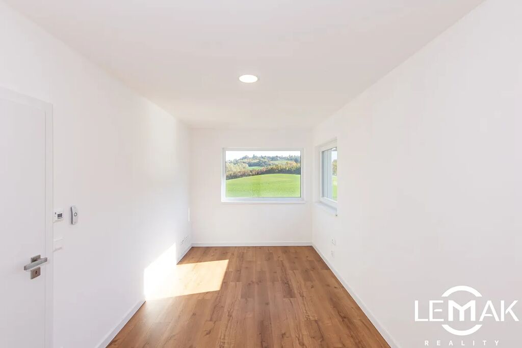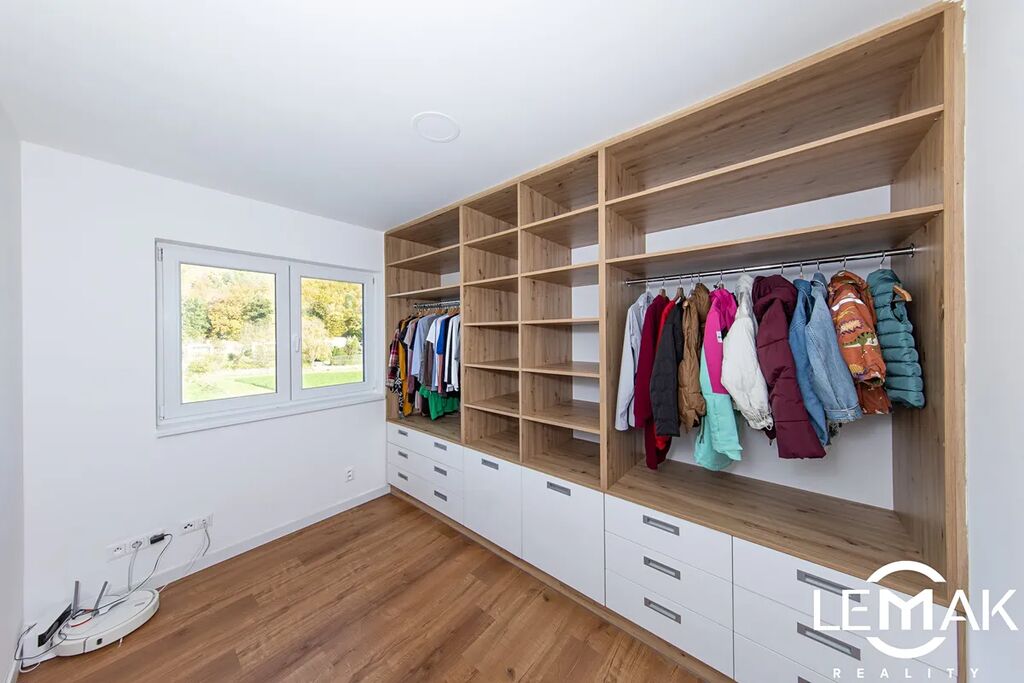 Interiér je laděn do teplých, příjemných tónů. Podlahy tvoří kvalitní vinyl s křemičitým jádrem, který má výborné vlastnosti pro podlahové vytápění.