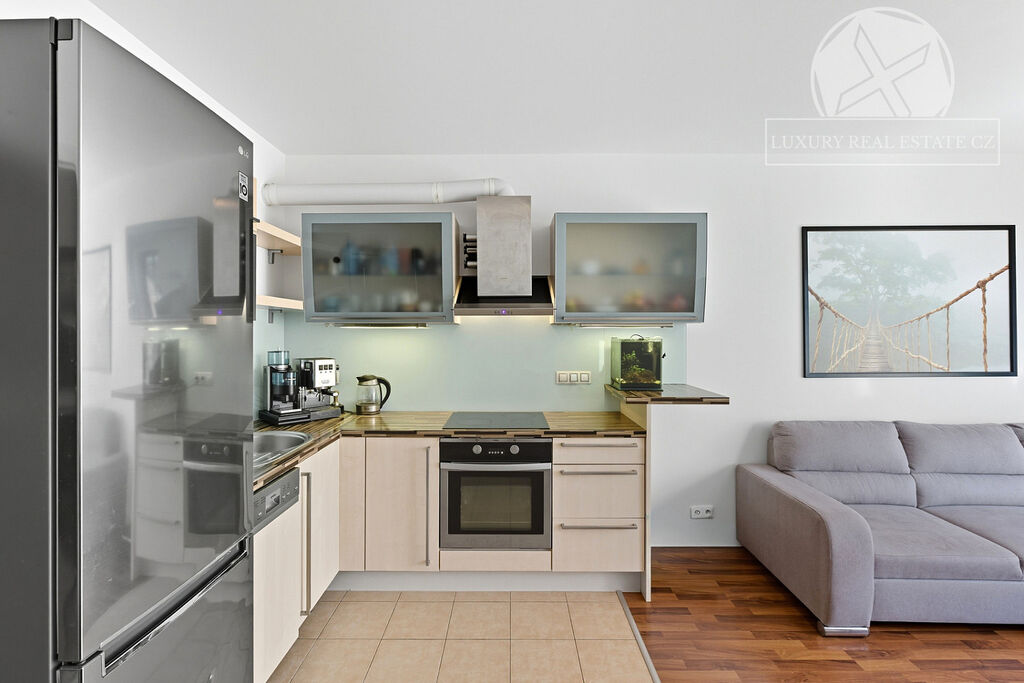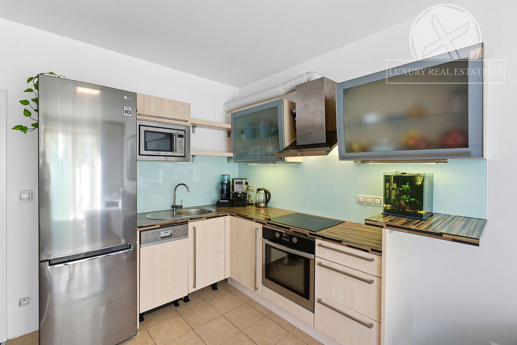 Byt se prodává částečně vybavený (stávající kuchyňská linka vč. spotřebičů, nová americká lednička s mrazákem, pračka a drobné doplňky).