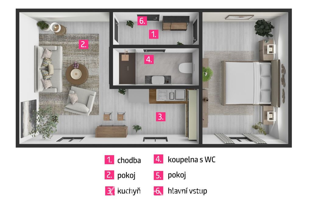 K dlouhodobému pronájmu nabízíme byt 2+kk o velikosti 53 m² – volný od listopadu 2025.