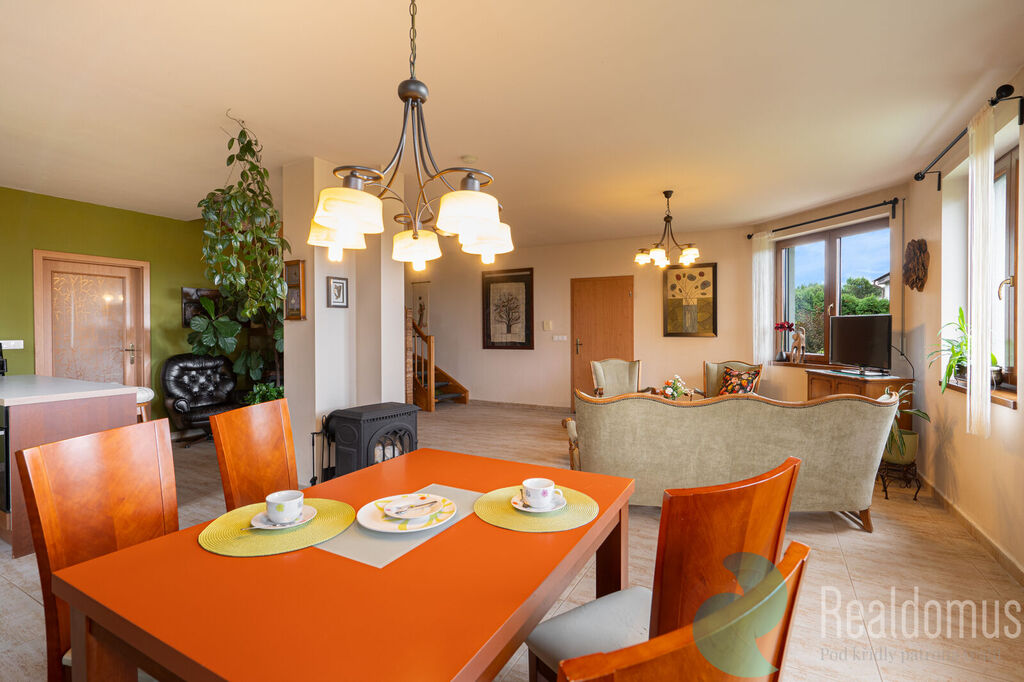 Dům je v současné chvíli rozdělen na 2 bytové jednotky. Hlavní bytová jednotka 3kk s velkorysou užitnou plochou 159 m2 se skládá z nádherné prosvětlené hlavní místnosti s kuchyňským koutem o rozloze 56 m2, dvou velkých ložnic (31 m2 a 27 m2), dvou koupelen (7 m2 a 6 m2) a technické místnosti. Druhá bytová jednotka 1kk má obytnou místnost s kuchyňským koutem (31 m2) a koupelnu 6 m2. Oba byty mají společnou chodbu a mohou být součástí jedné bytové jednotky, kdy jedna z ložnic bude mít vlastní koupenu s toaletou. Velký potenciál má toto dělení pro soužití více generací, či odrostlejší děti, které mohou mít v domě své samostatné zázemí.