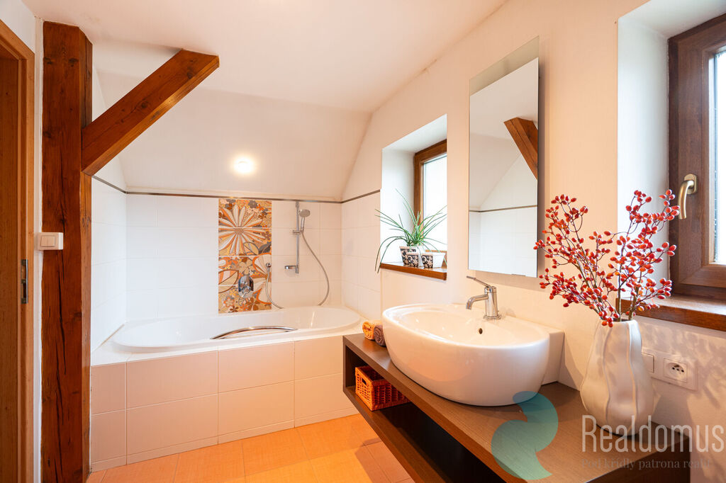 Technické parametry domu i kvalita provedení stavby zaručují bezstarostný život na nádherném místě s výhledem na České Budějovice a okolí. Dům je napojen na městskou kanalizaci a vodovod, na zahradě je i studna, z níž lze čerpat užitkovou vodu. Vytápění domu je zajištěno elektrokotlem, v přízemí je podlahové topení, v patře pak radiátory. V hlavní obytné místnosti jsou krbová kamna, která lze použít k vytápění hlavní bytové jednotky a dotváří též nádhernou atmosféru tohoto stylového prostoru.