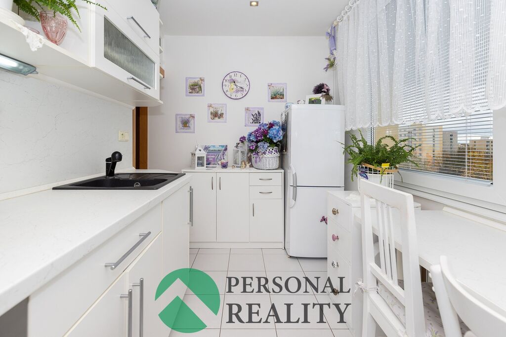 Byt je dispozičně velmi prakticky řešen – z předsíně je vstup do kuchyně, obývacího pokoje, WC a koupelny. Kuchyně je vybavena kuchyňskou linkou na míru včetně spotřebičů (trouba, varná deska, myčka, digestoř, lednice), a následně vstup do ložnice.
