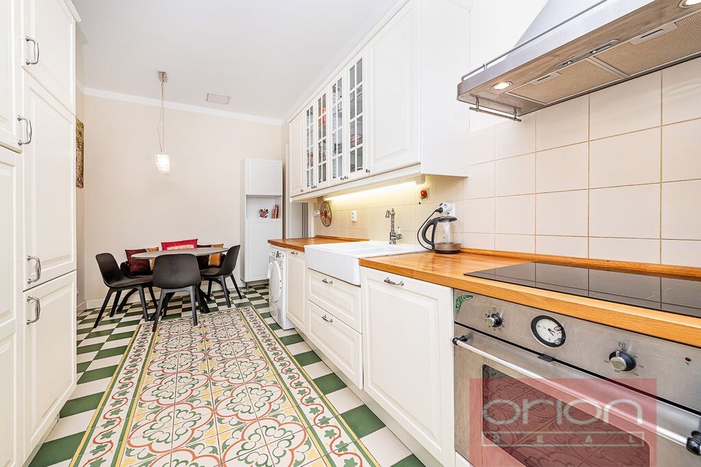 Vybavení a technické informace: kvalitní repasovaná špaletová okna, původní dřevěné dveře s pískovanými skly, parkety a dlažba na podlahách, vysoké stropy, podlahové topení v koupelně, nové rozvody elektřiny, vody a topení, plynový kotel Vaillant se zásobníkem na teplou vodu.