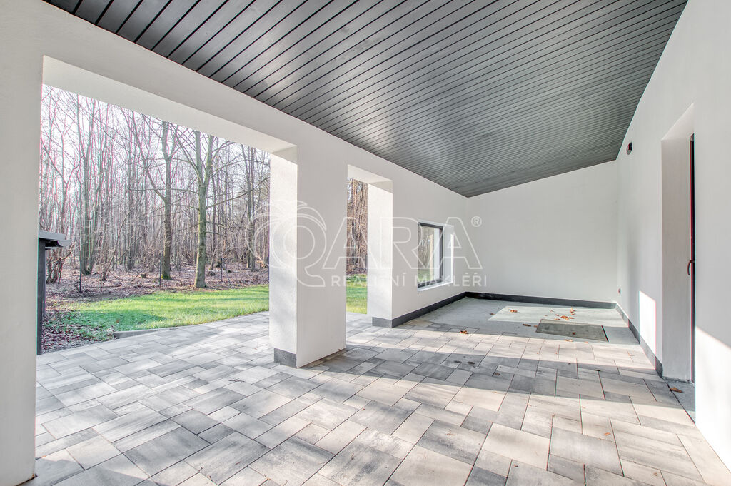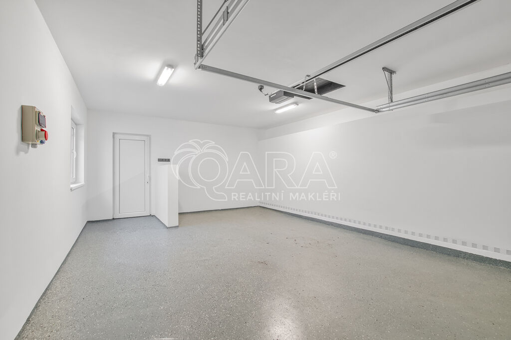 K bytu náleží samostatná garáž o velikosti 30 m², dílna o ploše 9 m²,krytá terasa o velikosti 21 m² v přízemí a také prostorná půda, jako úložný prostor. Parkování je zajištěno také na vlastním venkovním stání pro dvě auta na zámkové dlažbě. Součástí jednotky je rovněž soukromá oplocená zahrada o výměře přibližně 950 m² s možností dalšího využití podle vašich představ. Zahradní domek poskytuje prostor pro sezónní vybavení či nářadí.
