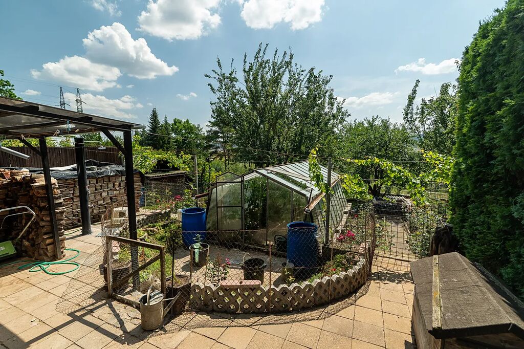 Ohřev vody je zajištěno el. bojlerem, vytápění krbovými kamny. Okolo chaty se rozprostírá krásně udržovaná zahrada, která je osázena množstvím okrasných keřů a ovocných stromů. Zahrada je perfektním místem pro relaxaci, rodinné oslavy nebo pěstování vlastních plodin. Na pozemku se nachází také skleník, který umožňuje pěstování rostlin po celý rok.