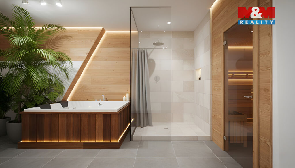 V přízemí domu se nachází garáž pro menší osobní vůz, technická místnost a další prostory, které přímo vybízejí k vybudování vlastního wellness nebo relaxační zóny dle vlastních představ (vizualizace součástí nabídky).