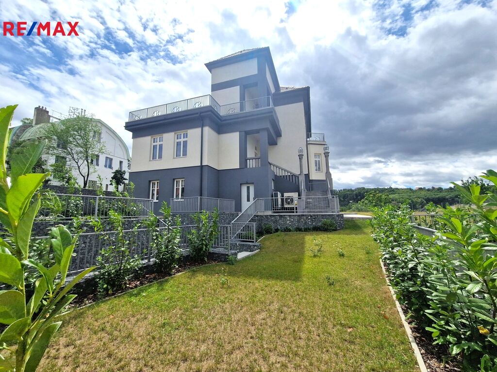 Rádi bychom Vám exkluzivně nabídli k pronájmu výjimečné bydlení, které se nachází ve 3. patře (4.NP) vily od významného stavitele Ing. Bedřicha Hlavy, která prošla čerstvě zcela kompletní nákladnou rekonstrukcí s respektem k původní architektuře, s maximálním zachováním dobových prvků, přičemž interiér plně odpovídá nárokům na moderní a komfortní užívání. Jedná se podkrovní byt, jehož podlahová plocha je 104,9 m2, terasy cca 6 m2, k užívání patří také sklep, celková užitná plocha je cca 110 m2. Vila sestává ze 4 nadzemních podlaží, jedná se tedy o příjemné komorní bydlení luxusního charakteru.