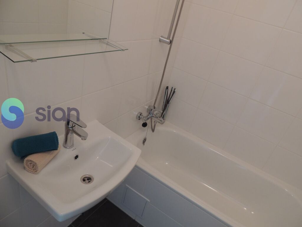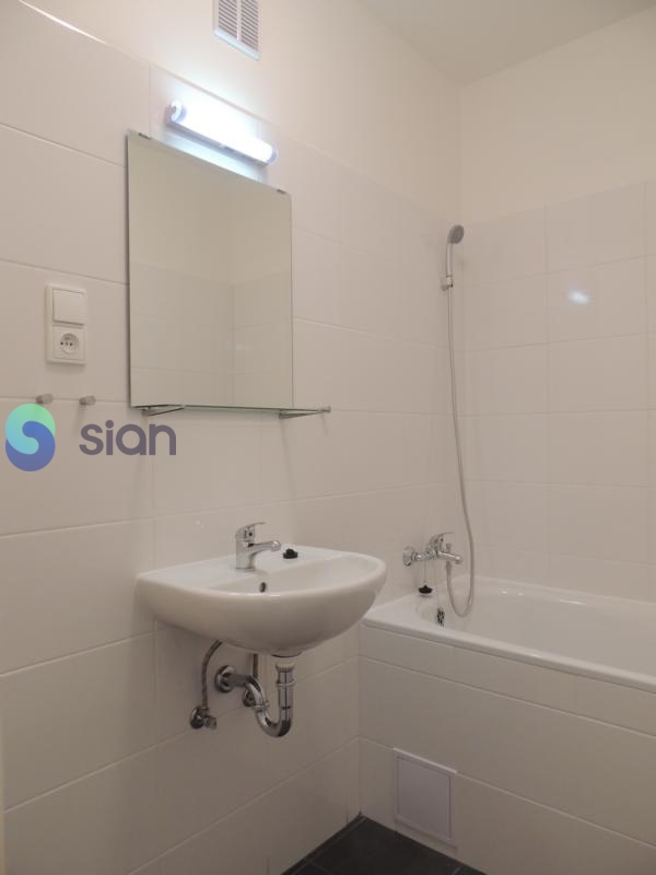 Koupelna s vanou a umyvadlem, toaleta je odděleně. Byt disponuje kuchyňskou linkou s kombinovaným sporákem.