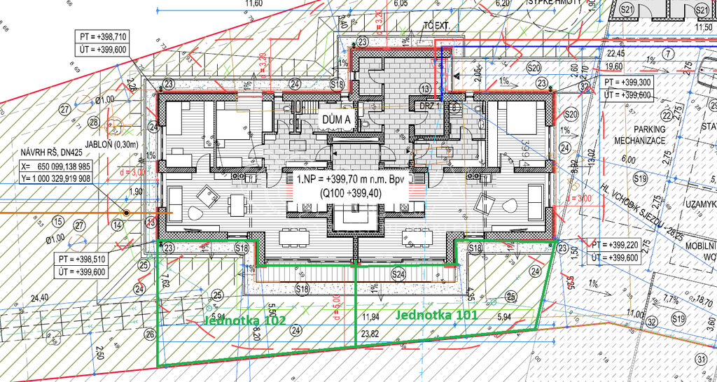 Byt o celkové ploše 73,8m² (byt)+ 56m2 (předzahrádka + terasa) se nachází v přízemí domu a poskytuje dostatek prostoru pro každodenní rodinný život. Celý prostor s moderní architekturou a příjemným prosvětlením vytváří ideální prostředí pro rodinné chvíle. V bytě je příprava na kuchyňskou linku.