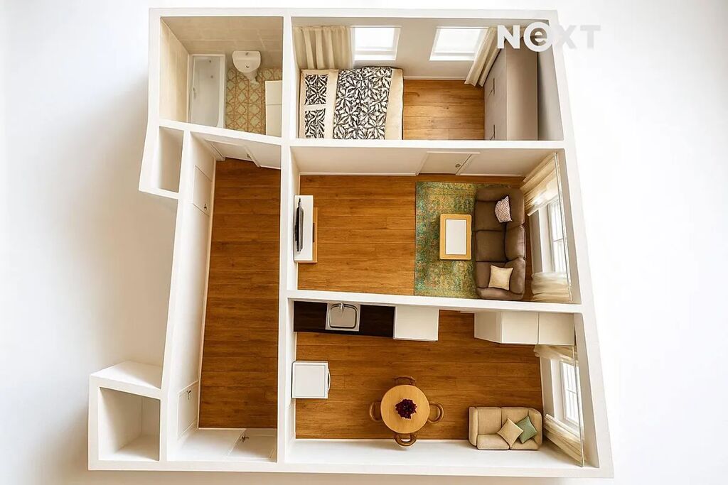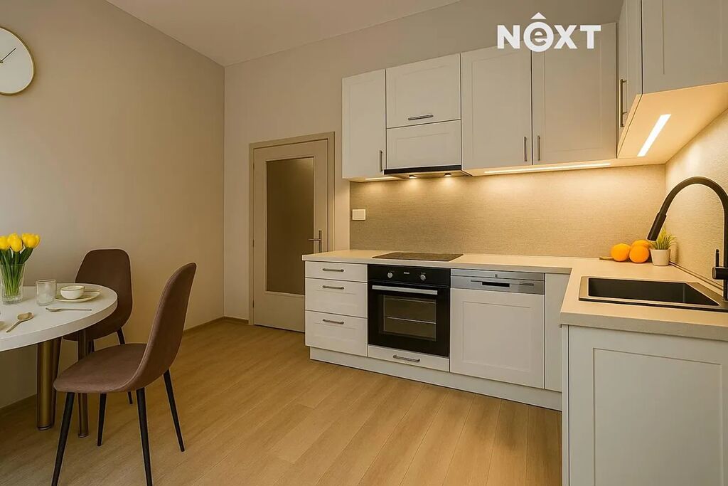 Byt o podlahové ploše přibližně 50 m² se nachází v 1. nadzemním podlaží udržovaného domu s výtahem. Původní dispozice 2+kk byla chytře upravena nenosnou příčkou, díky níž dnes nabízí samostatnou ložnici, obývací pokoj a oddělenou kuchyň – tedy plnohodnotné 2+1.