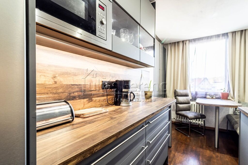 Byt zaujme praktickou dispozicí i vysokým standardem vybavení. Je připojený k zabezpečovacímu systému Jablotron, přístup do bytu vede přes uzamykatelnou chodbu oddělenou od výtahů a schodiště. Kuchyňská linka na míru v hodnotě 260 000 Kč byla instalována před 2 měsíci a je vybavena vestavnými spotřebiči (myčka, plynový sporák, elektrická trouba, digestoř, lednice s mrazákem). V bytě jsou snížené stropy s bodovými světly, v ložnici i pokoji v horním patře lesklé stropní panely. V předsíni i pokojích jsou prostorné vestavěné skříně a další úložný prostor nad schodištěm.