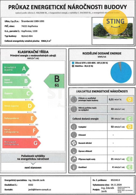 Exkluzivně nabízíme podnájem částečně vybaveného družstevního bytu 1+KK o podlahové ploše 45 m2 v Kopřivnici na Štramberské ulici. Tento byt se nachází ve 2. podlaží šestipodlažního panelového domu po revitalizaci. Plastová okna bytu jsou orientovaná na jihovýchod. Byt je velice teplý a útulný. Má vyzděné jádro, v koupelně je rohová vana, umyvadlo a WC. Předsíň je vybavena velkou vestavěnou skříní a botníkem. Vedle hlavního pokoje je velice praktická a prostorná šatna s policemi a věšáky. Součástí vybavení kuchyňského koutu je vestavěná elektrická trouba, plynový varný panel, komínová digestoř a lednice s mrazničkou. K bytu patří sklepní kóje o velikosti cca 3 m2. Nastěhování je možné ihned po dohodě. Měsíční nájemné činí 11.600 Kč bez záloh na elektřinu a plyn, které jsou 1.300 Kč. V měsíčním nájemném jsou zahrnuty veškeré platby bytovému družstvu. Dále je nutno počítat s vratnou kaucí ve výši 2 měsíčních nájmů, s provizí RK ve výši 12.100,- Kč a s poplatkem bytovému družstvu ve výši 4.800 Kč ročně.