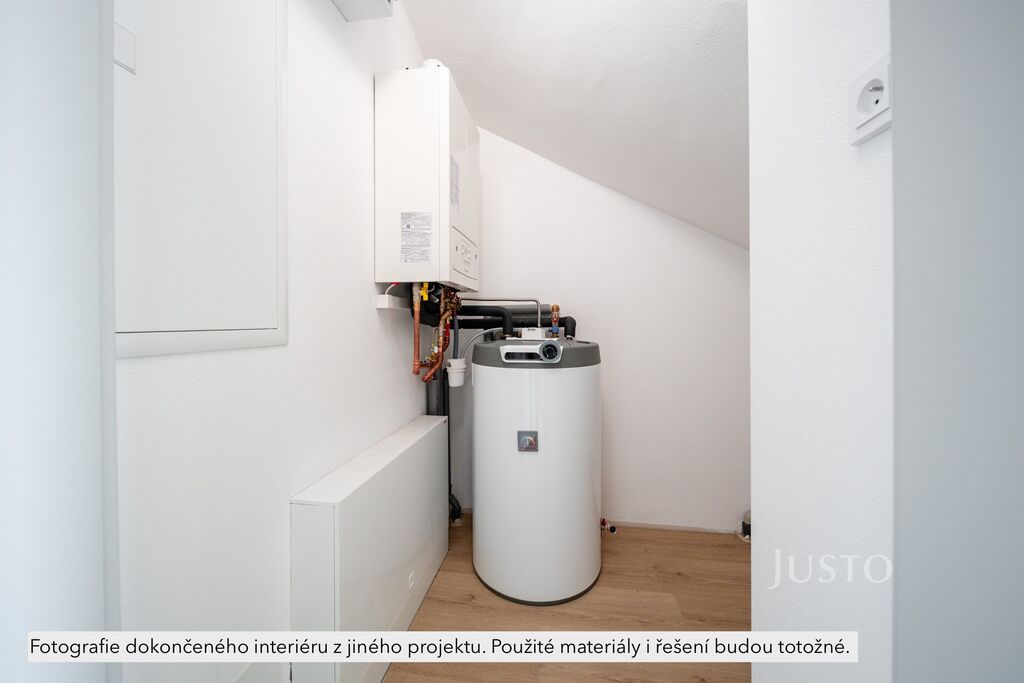 Díky chytrému rozmístění místností a kvalitnímu stavebnímu provedení nabízí dům nejen dostatek prostoru, ale i vysoký komfort. Vytápění zajišťuje tepelné čerpadlo Panasonic, které se postará o nízké provozní náklady a zároveň je šetrné k životnímu prostředí. Podlahové vytápění je samozřejmostí, stejně tak příprava na venkovní žaluzie, odtah pro digestoř a další praktické detaily.