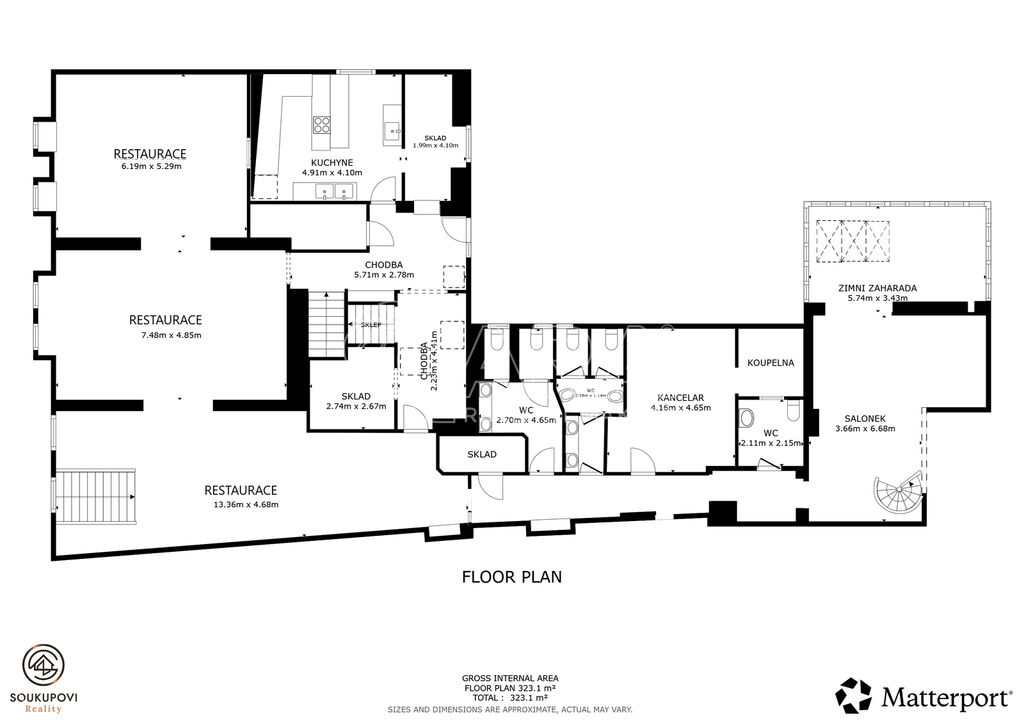 - Celkovou užitnou plochu restaurace a zázemí: 290 m²