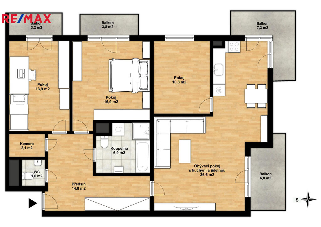 V exkluzivním zastoupení majitele nabízíme k pronájmu rekonstruovaný luxusní byt s dispozicí 4+kk o celkové výměře 126 m2 se 4 balkony a 2 parkovacími stáními v moderní zástavbě, ve velmi klidné části městské čtvrti Záběhlice.