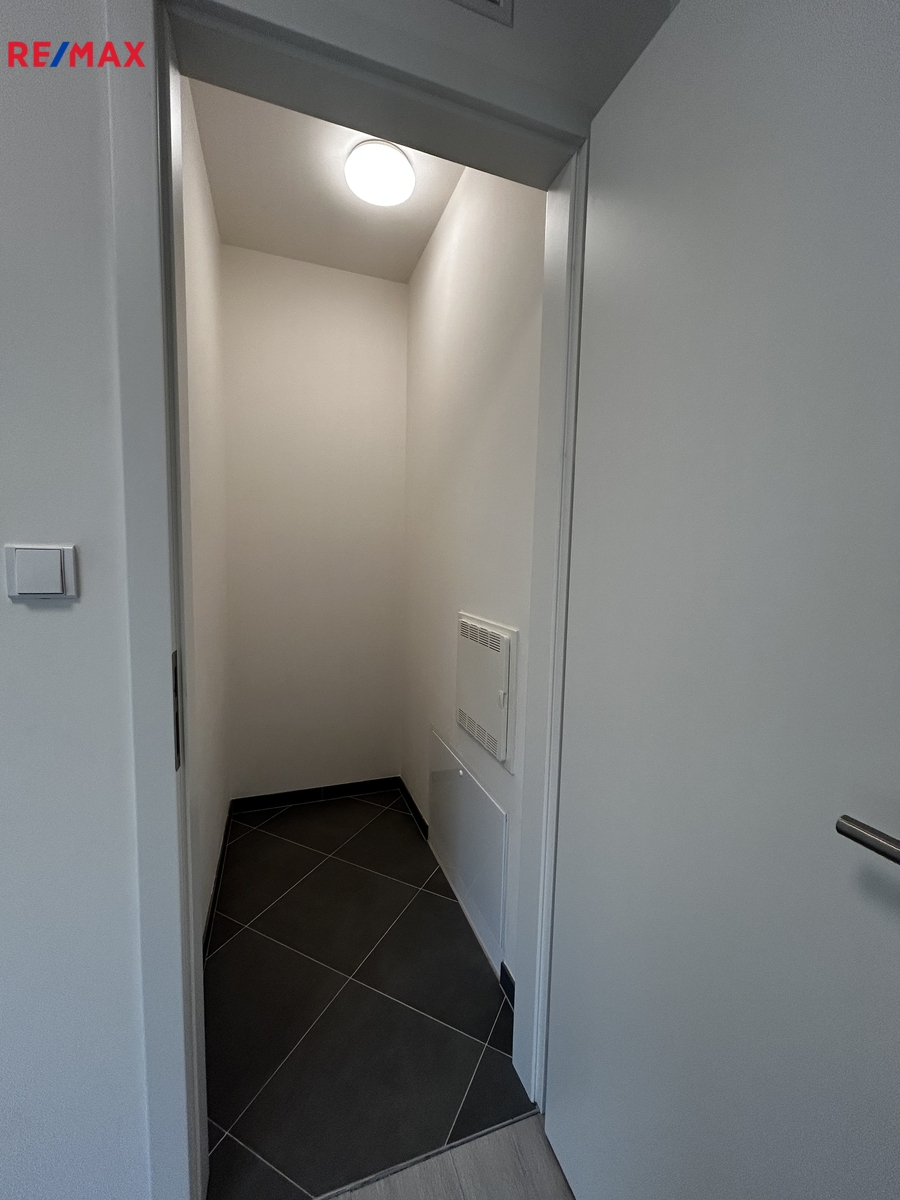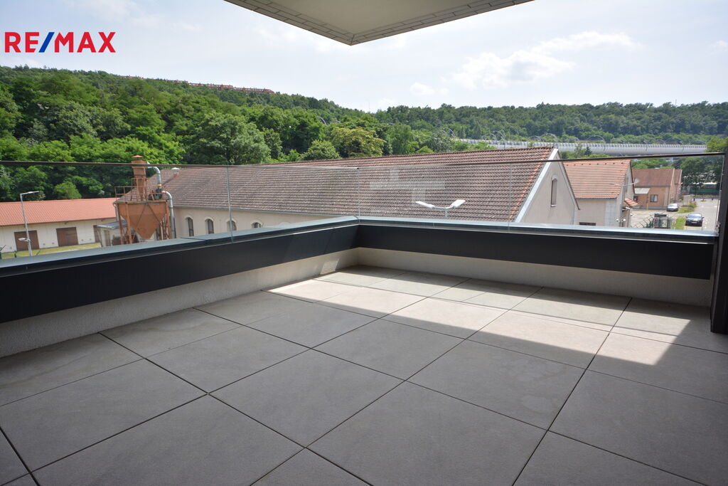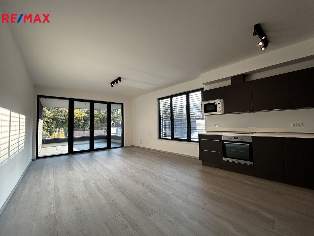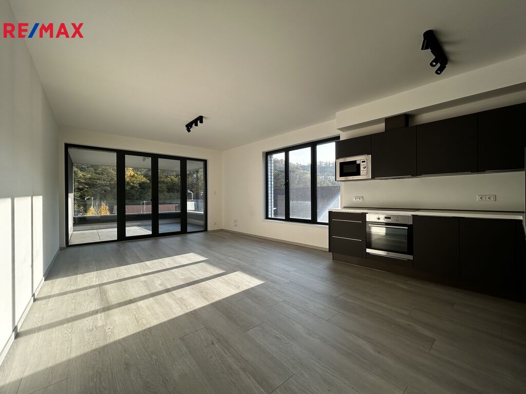 Dispozice bytu zahrnují vstupní chodbu 7,2 m2, kde se nachází koupelna spolu s WC 4,2m2 , komora 1,8 m2 dále je z ní vstup do ložnici 12 m2 a obývacího pokoje s kuchyňským koutem o velikosti 29,1 m2 s přímím vstupem na terasu o velikosti 12 m2. Orientace bytu je jihozápadní s krásným a nerušeným výhledem do zeleně. Byt se pronajímá částečně zařízený, kdy součástí je kuchyňská linka, včetně všech vestavných spotřebičů jako je indukční deska, myčka, trouba a lednice s mrazákem. Dále součástí pronájmu je pračka se sušičkou, vytavená skříň na chodbě a v ložnici. Dále je nutno zmínit vysoký standard provedení - hliníková trojskla, elektronicky ovládané předokenní žaluzie, podlahové vytápění a velkoformátové dlažby RAKO na terase, plovoucí podlaha v obytných prostorech, interiérové dveře Sapeli polodrážkové s magnetickým zavíráním a bezpečnostní vchodové dveře. Nadstandardní zařízení bytu odpovídá současným nárokům na komfortní a moderní bydlení. Ve vestibulu vstupní chodby najdete elektronickou informační tabuli s údaji např. o venkovní teplotě, časech tramvajových spojů atd.