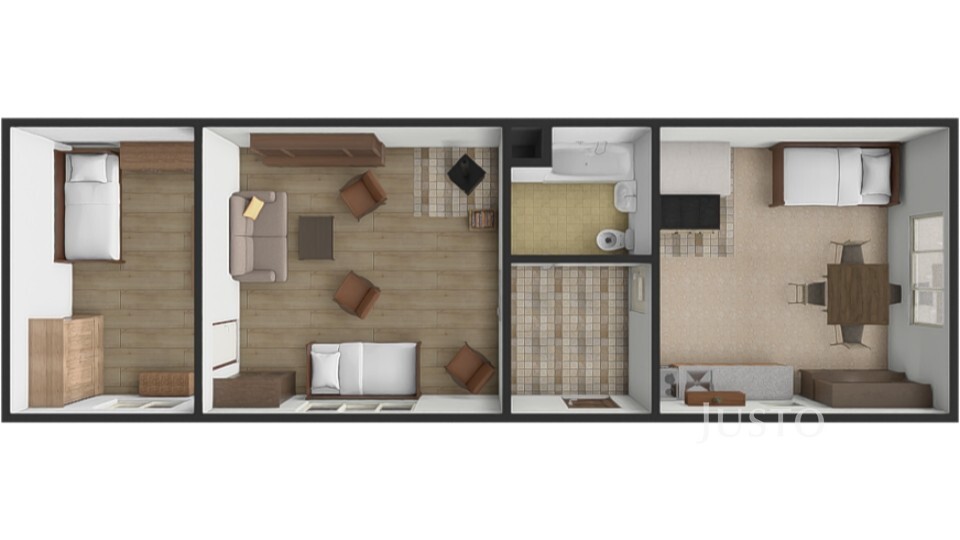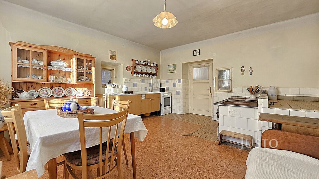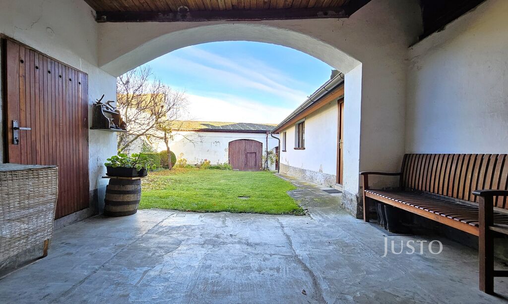 Příběh tohoto místa dávají tušit už samotná vrátka do uzavřeného dvorku. Když vstoupíte, ucítíte klid, bezpečí a zákoutí pro letní posezení i odpočinek. V bytové části chalupy najdete dvě průchozí místnosti, kde jsou doslova zachyceny vzpomínky na společně strávené večery i rodinné oslavy. Prostorná kuchyně o výměře 20 m² s tradiční pecí a vyhřívárnou navodí atmosféru opravdového domova, kde může vznikat ta nejlepší domácí kuchyně. Na koupelnu s vanou a toaletou navazuje předsíň, která dává prostoru útulný rámec.