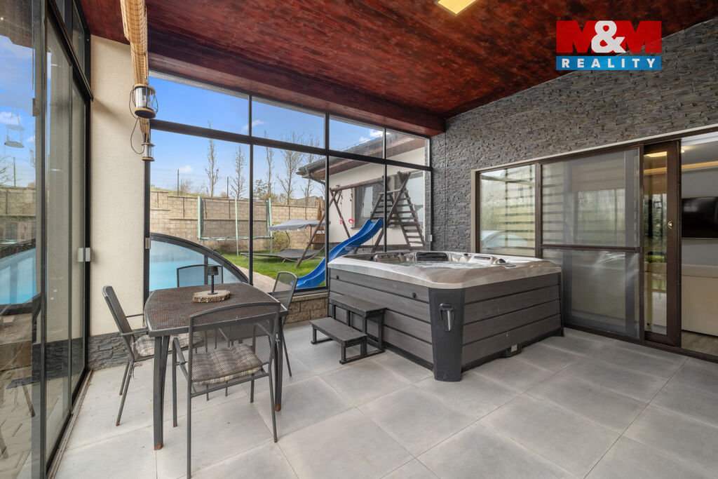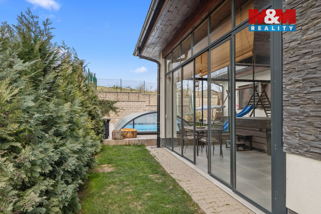 Prodej výjimečného rodinného domu (5+kk, 166 m²) z roku 2019 v Netovicích. Moderní technologie, maximální pohodlí a klid. Obývací část navazuje na zimní zahradu orientovanou na jihozápad s krytým vyhřívaným bazénem a vířivkou.