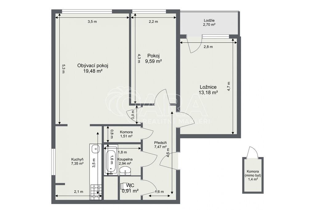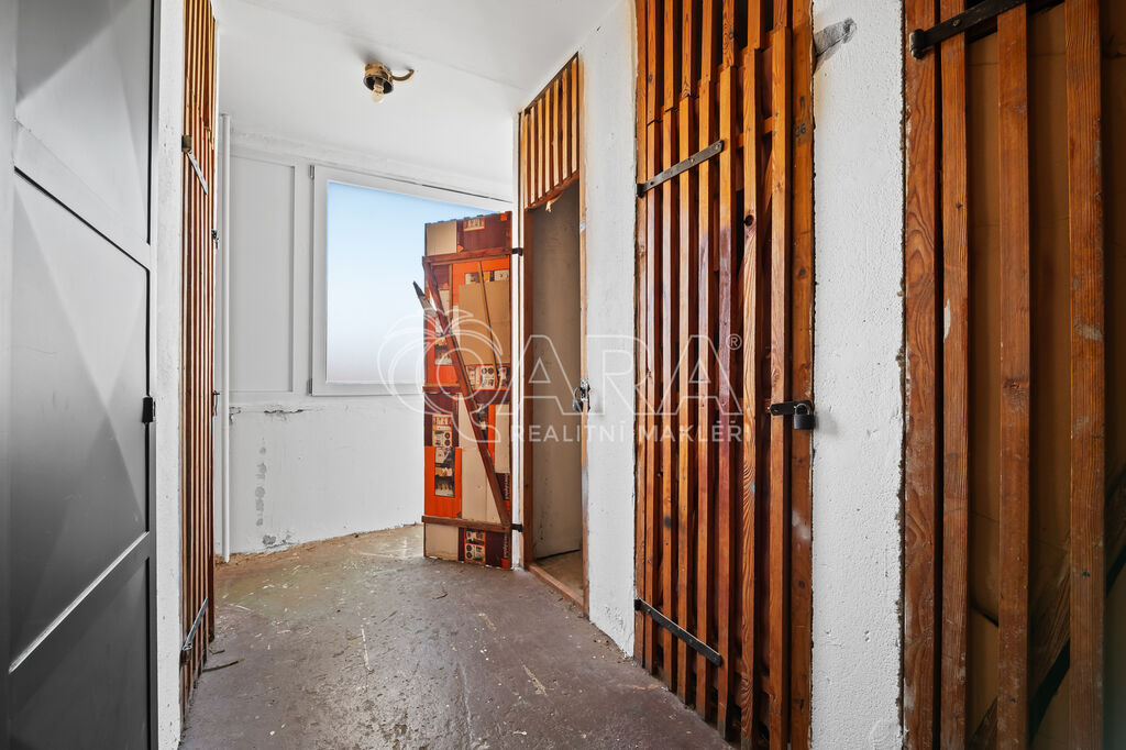 Dispozice bytu je velmi praktická – tři neprůchozí pokoje z nichž na jeden navazuje kuchyně, dále pak koupelna, samostatné WC, předsíň, komora a lodžie přístupná z jednoho z pokojů. Orientace na jihozápad zaručuje dostatek denního světla po celý den. Okna jsou plastová, ale jinak je byt v původním stavu a je určen ke kompletní rekonstrukci. Jádro je umakartové. Díky tomu si můžete byt upravit přesně podle svých požadavků a vkusu.