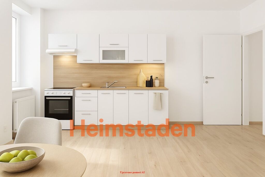 Součásti bytu je moderní kuchyňská linka v obytné části, kde je dostatek místa na posezení, umístění lednice a dalšího nezbytného nábytku.