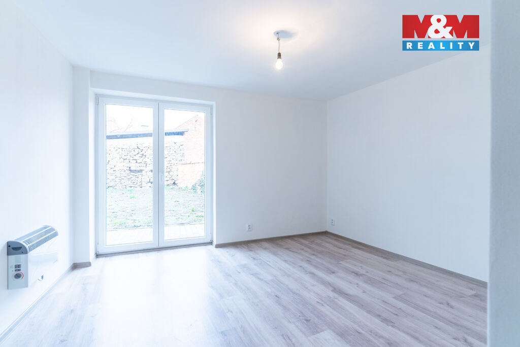 Za domem je rovinatá zahrada se soukromím, přístupná z chodby i obývacího pokoje. Plocha parcely je celkem 149 m2.